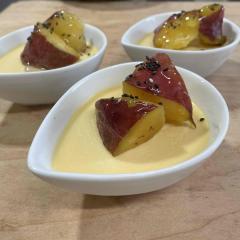 | ラム酒の名産地として有名なマルチニック島をイメージしたケーキ。ナッツとオレンジをアクセントに焼き上げた濃厚なブラウニーとラム酒が香るババロアを重ねました。 | |